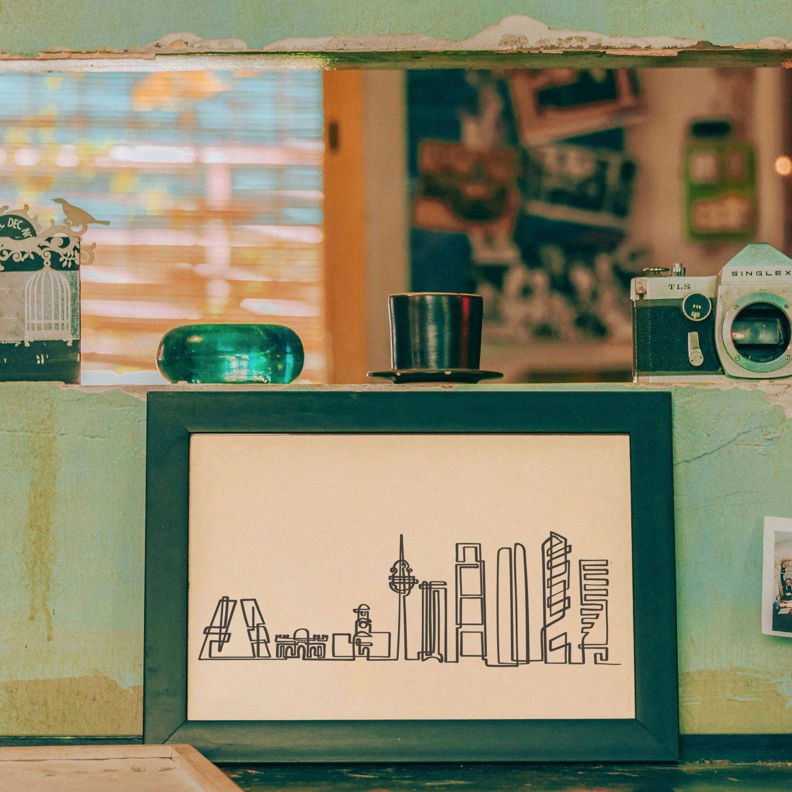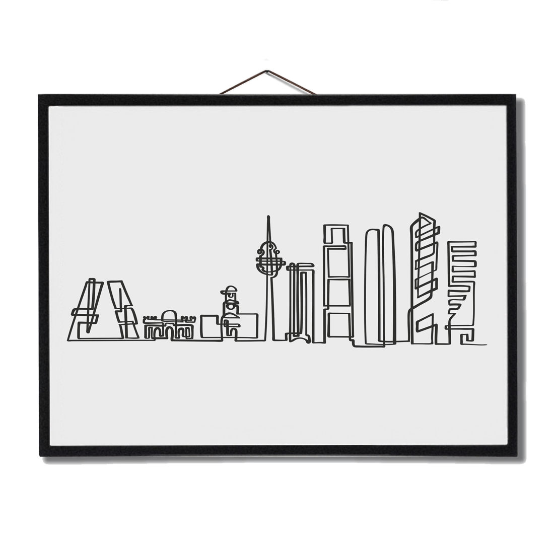 Una sola línea, sin levantar el lápiz, recorre el skyline de Madrid. El Palacio Real, la Torre de Madrid, la silueta inconfundible de la