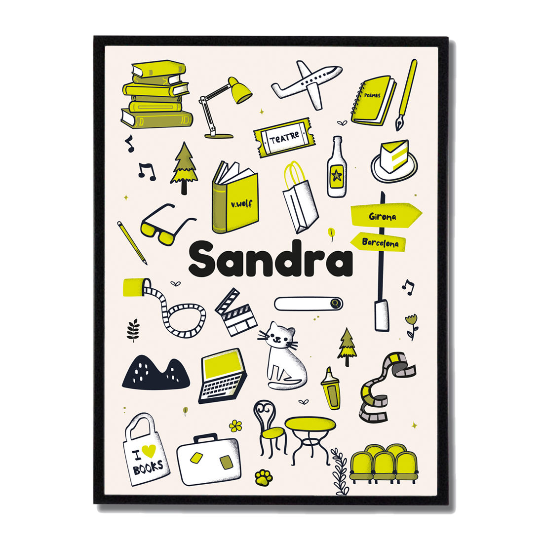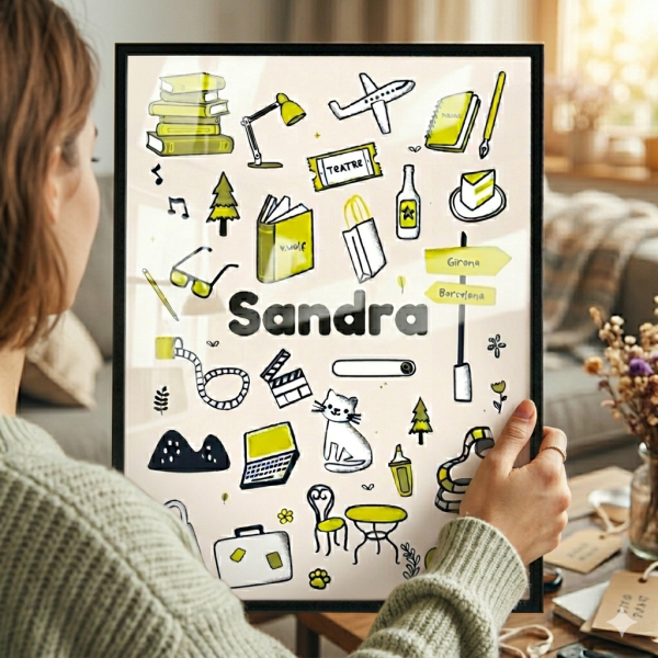 A partir de un nombre y una lista de intereses, creare una lámina ilustrada exclusiva, diseñada especialmente para ti o para regalar. Cada póster es diferente, porque cada persona tiene su propio mundo.