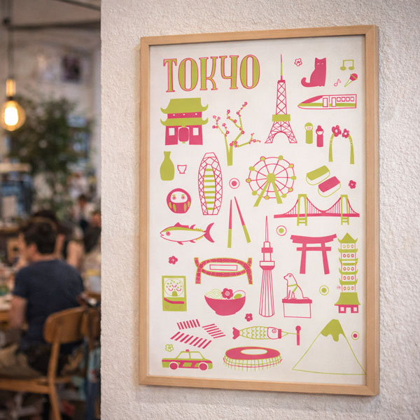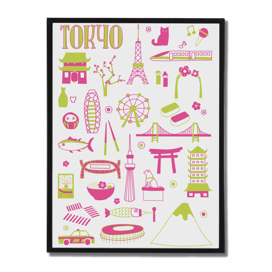 Esta lámina destaca los elementos más icónicos de Tokio: desde majestuosos edificios como la Torre de Tokio y el skyline, hasta su deliciosa gastronomía y las hermosas flores de sakura.